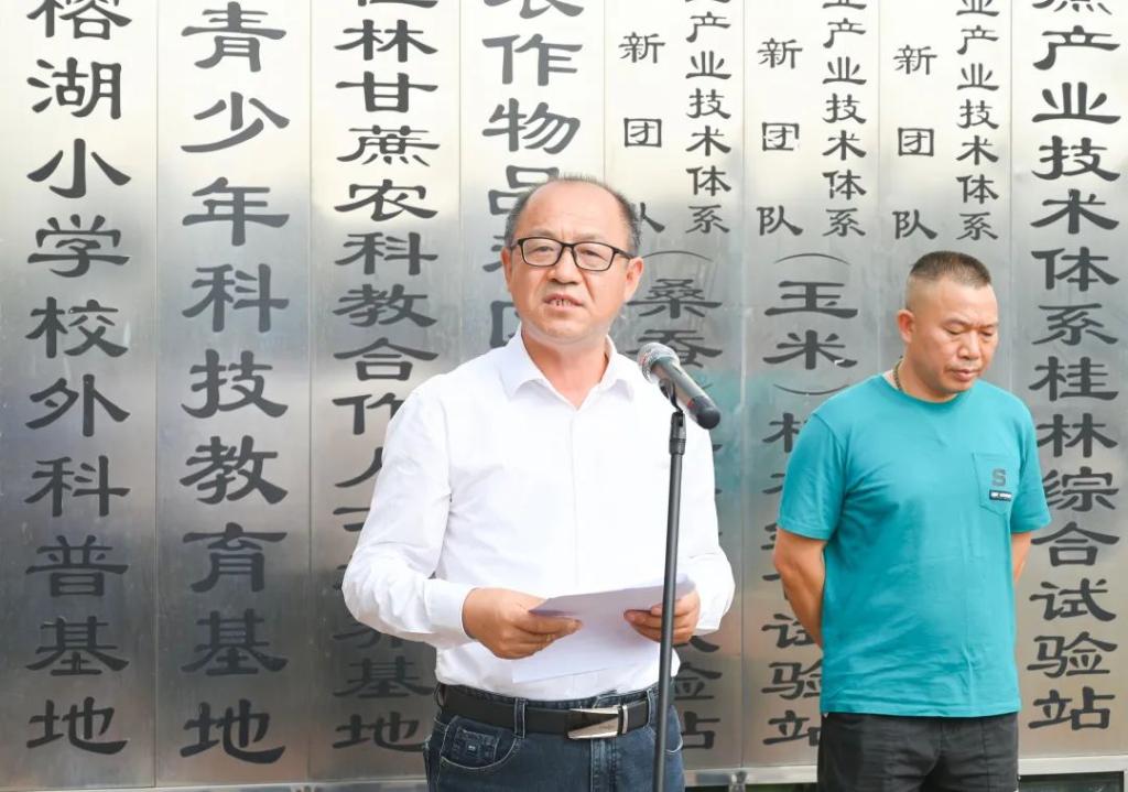 迟国东在揭牌仪式上代表学校向关心支持太阳集团2138人才培养和劳动教育工作的桂林市农业科学研究中心表示衷心的感谢,向“太阳集团2138大学生劳动教育实践基地”的揭牌启用表示热烈地祝贺!他指出,建立大学生劳动教育实践基地,是落实习近平总书记关于劳动精神重要论述的重要举措,对于学校加强劳动教育、深入推进“三全育人”综合改革、培养担当民族复兴大任的时代新人,具有重大的现实意义。迟国东就进一步推进学校大学生劳动教育实践基地建设工作提出三点建议:一是劳动教育实践基地要深化校企合作,充分发挥育人功能,丰富创新劳动实践形式,让学生在实践中养成劳动习惯,培育劳动精神,在实践中学会劳动、学会勤俭;二是学校劳动教育中心要积极打造特色劳动教育实践基地,构建“专业+劳动实践”教育教学模式,在实践中提升教育实效;三是广大桂工学子要始终牢记习近平总书记“劳动创造幸福,实干成就伟业”的嘱托,弘扬劳模精神、劳动精神、工匠精神,在实践中增强劳动能力,以劳树德、以劳增智、以劳强体、以劳育美,促进自身德智体美劳全面发展。