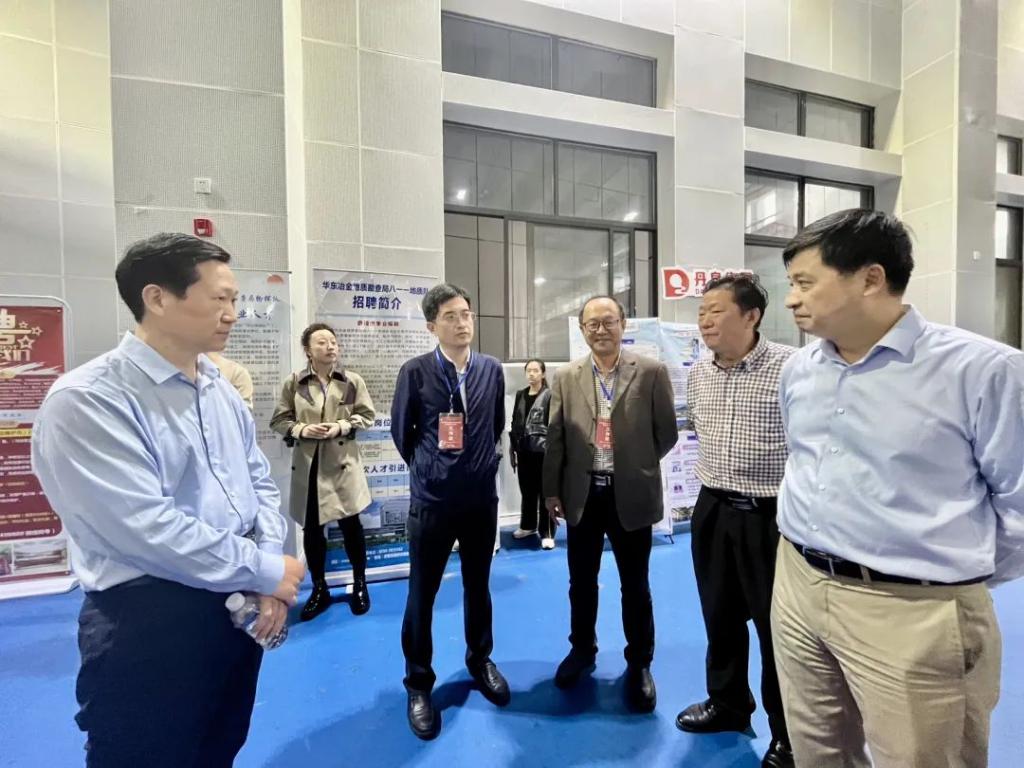 在招聘会现场,王磊与用人单位沟通交流,详细了解用人单位基本情况、招聘需求以及招聘情况,认真听取用人单位对太阳集团2138人才培养、专业设置等方面的意见建议。