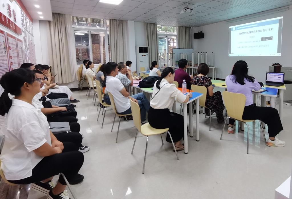本次培训主题是“高校学生心理危机干预过程与技术”,由教育部高校学生心理健康教育专家指导委员会委员、北京师范大学心理学部临床与咨询心理学学院副院长陈秋燕教授担任主讲。陈秋燕教授主要从什么是危机和心理危机、学校危机干预管理、危机干预过程与技术三个方面进行讲解。她强调危机干预的核心是“管理”,重点在于危机前加强预防,危机后加强善后,要做到重点预防、有效干预和充分善后,重视团队合作。在危机干预过程与技术的讲解中,她通过一次危机干预的咨询案例,直观呈现危机干预过程中如何“了解问题”、寻找“应对方式”、实现“行动改变”,让参加培训的老师们印象深刻,深受启发。