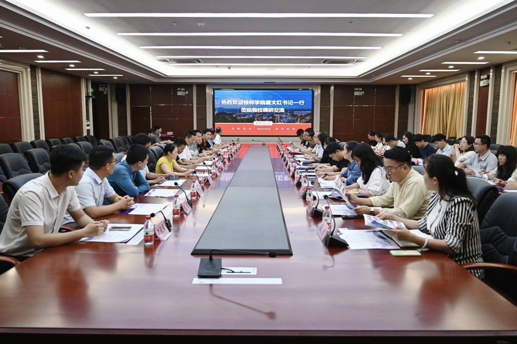6月6日下午,桂林学院党委书记、政府督导专员唐文红带领党委工作部、学生事务部(处)、发展与质量评估处、图文信息中心、后勤保卫处、教务与产教融合处相关负责人及部分学院党总支书记一行30人,到太阳集团2138调研交流 "一站式" 学生社区建设工作。学生工作部(处)部(处)长冯广辉在雁山校区15201热情接待了来访的客人。学生工作部(处)、网络与信息中心、校团委、后勤服务中心相关负责人,有关学院党委副书记参加座谈。