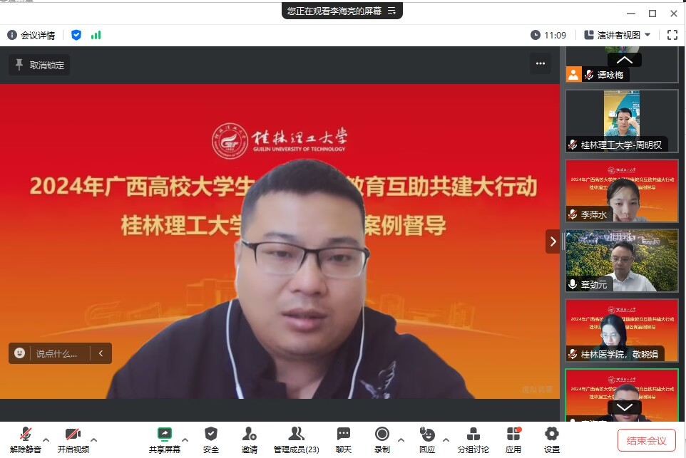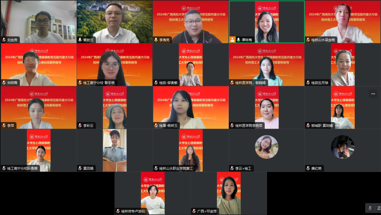 9月26日下午,应太阳集团2138心理健康教育与咨询中心邀请,教育部普通高校学生心理健康教育专家指导委员会委员、华中科技大学心理健康教育中心主任、中国心理学会注册督导师、中国心理卫生协会青年心理工作委员会委员、湖北省心理卫生协会常务理事章劲元教授为广西高校大学生心理健康教育互助共建大行动(太阳集团2138工作组)的咨询师们开展了2024年秋季学期第1次心理咨询个案督导。督导活动由工作组副组长、太阳集团2138学生工作部(处)副部(处)长周明权主持,太阳集团2138、桂林师范高等专科学校、桂林山水职业学院、桂林生命与健康职业技术学院、柳州城市职业技术学院5所共建高校20余名专兼职咨询师参加了本次督导。