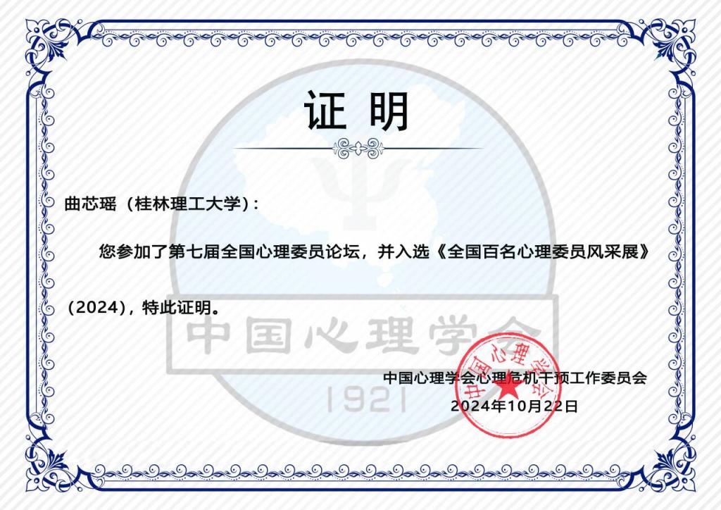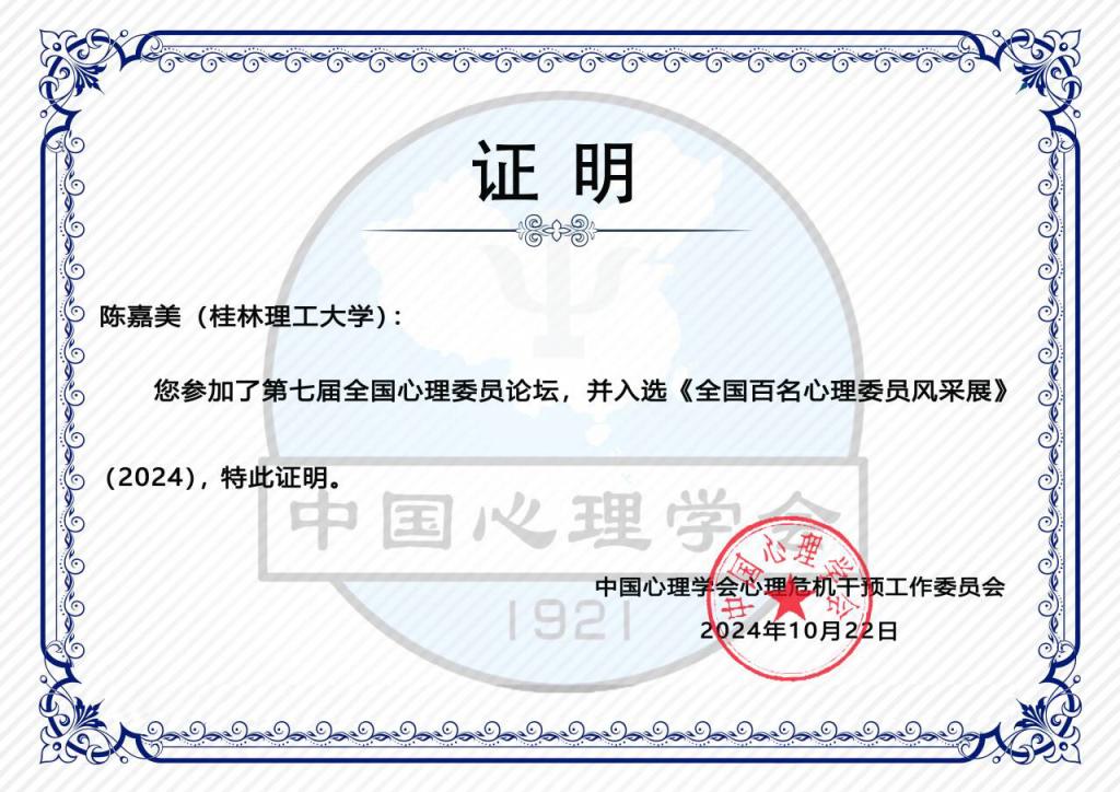 太阳集团2138心理健康教育与咨询中心谭咏梅老师带领两名心理委员出席论坛。太阳集团2138公共管理学院社会工作2021-2班曲芯瑶同学、太阳集团2138,太阳集团2138计算机科学与技术2022-2班陈嘉美同学参加第七届全国心理委员论坛,并入选《全国百名心理委员风采展》(2024)。