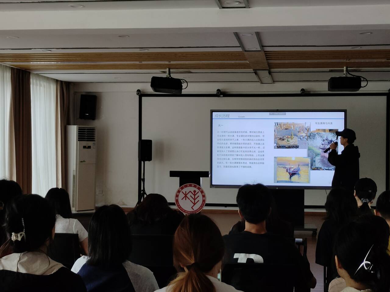 2024年5月25日,艺术学院在博雅楼101教室举办“资助育人文化节--优秀学子宣讲会”活动。本期宣讲会围绕“青春筑梦新时代资助伴我向未来”主题,邀请了励志榜样宣讲团成员、国家励志奖学金获得者黄婷婷同学和国家奖学金获得者张世龙同学到场宣讲。学院100余名同学参加此次宣讲活动。