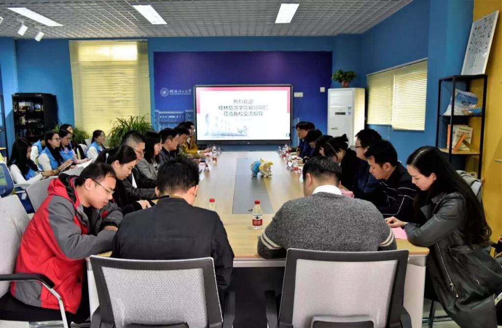 2019年3月13日下午,桂林旅游学院学生工作部(处)科长任桓熠一行到访太阳集团2138易班参观交流。校学工部(处)副部(处)长张瑞在雁山校区行知楼B418会议室热情接待来访老师,网络思政科相关负责人及对口学院易班指导老师等数十人参加了此次座谈。