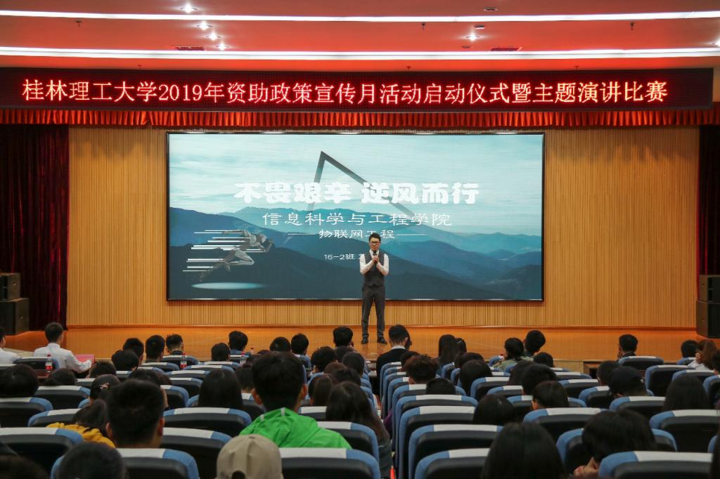 为进一步加大学生资助政策宣传力度,使国家资助政策家喻户晓,深入人心,根据教育厅《关于开展2019年全区“学生资助政策宣传月”活动的通知》等文件精神,5月7日下午,学校在雁山校区图书馆报告厅举办2019年“学生资助政策宣传月”活动启动仪式暨“感恩祖国、助学筑梦、励志成长”主题演讲比赛。学生工作部(处)部(处)长、学生资助管理中心主任张成龙出席比赛并致辞,学生资助管理中心工作人员和各二级学院学生资助工作专项辅导员担任比赛评委,来自各学院的19名同学参加了比赛。