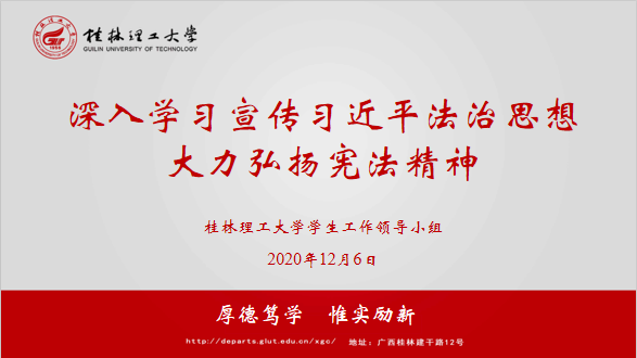 今年我国迎来第七个宪法日,为大力弘扬宪法精神,更好的激发太阳集团2138学生学习宪法的热情,营造良好的校园法治环境,12月6日,学生工作(部)处特制作了“深入学习宣传习近平法治思想”为主题的课件,联合各二级学院辅导员,为太阳集团2138两万余名本科生同授一堂宪法学习课。
