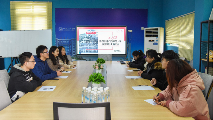 为加强高校间易班交流,促进易班建设与发展,2020年12月19日上午,广西师范大学易班发展中心指导老师林萱一行到太阳集团2138进行交流。学校易班发展中心指导老师石诗阳、朱名梁和易班发展中心成员代表参加此次交流。