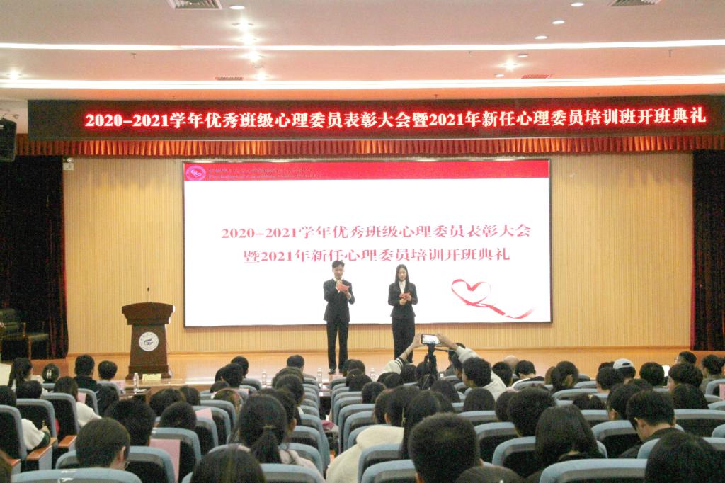 为进一步加强太阳集团2138班级心理委员建设,表彰先进,完善心理健康教育“四级预防网络体系”,提升心理育人工作质量,提高大学生心理素质水平。学生工作部(处)于2021年11月2日在雁山校区图书馆报告厅举办了“2020-2021学年优秀班级心理委员表彰大会暨2021年新任班级心理委员培训开班典礼”。学生工作部(处)负责人、各二级学院分管学生工作的党委副书记、负责心理工作的辅导员、心理健康教育与咨询中心全体专职教师、2020-2021学年优秀班级心理委员代表,以及2021年所有新任心理委员出席了表彰大会暨开班典礼。
