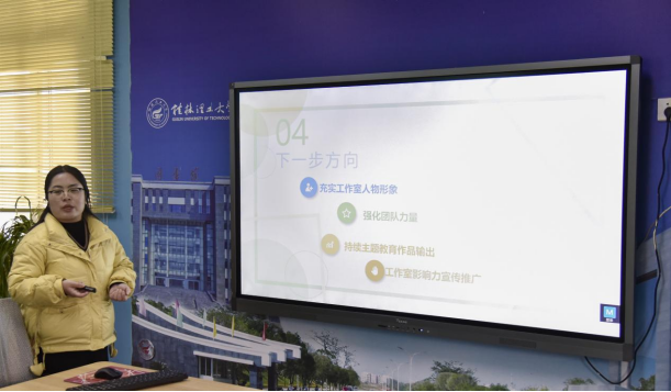 下一步,学校将实施辅导员工作室能力提升专项计划,围绕高校思想政治工作中的重点、难点问题,开展学术研究、实践探索、研讨交流,建立研究式、讨论式、互动式工作模式,打造一批示范工作室、优化一批重点工作室,推动辅导员工作室打造品牌、塑造能力和创造价值,产出可复制、可推广的工作成果。