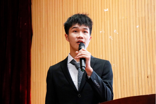 校易班站长团主要负责人侯明威进行发言。他回望校易班六年来从无到有、从有到优、从优到特的成长与蜕变,并期待易班的小伙伴们在新征程中高举学习与创新的旗帜,勇敢奋进,大胆拼搏,不忘初心、牢记使命,共同创造易班的辉煌新篇章。