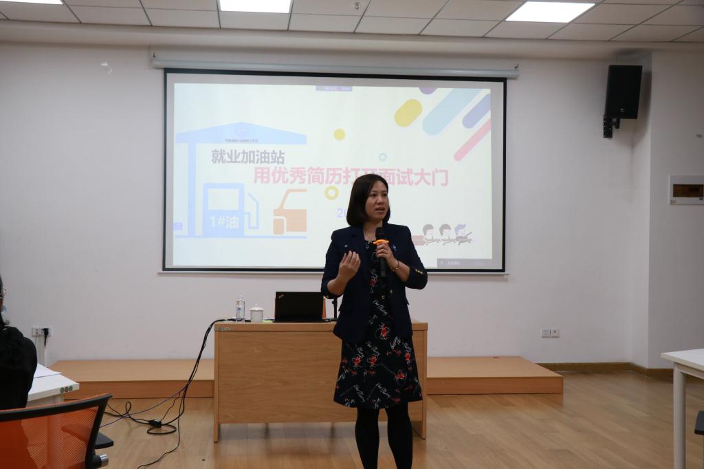 陶剑飞副教授作《用优秀简历打开面试大门》专题培训。她围绕“历”尽人生、量“历”而动、“历”兵秣马、据理“历”争、“历”挽狂澜五个方面,以幽默的语言、详实的案例进行了详细讲解。她指出,简历要具有针对性,要充分增强对求职企业的知识储备,对待不同岗位制作针对性、特色鲜明的简历;简历要凸显个人优势,汇总个人信息库,整理个人经历,多用关键词、动词、数字清晰有力展示个人经历,让简历“立”起来;简历要注重细节,参考报纸的文案、杂志的排版,重要内容放置简历中上部分,打造吸睛性强的求职简历。