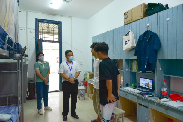 会后,吴志强副书记一行深入学生宿舍,与学生亲切交谈,关切地询问了同学们在学业和生活上的具体情况,并叮嘱学生要积极配合学校当前的疫情防控工作,强化自身的疫情防控意识。同时,吴志强副书记针对宿舍的疫情防控管理工作进行检查与指导,要求各部门要进一步落实好宿舍卫生消杀与学生进出宿舍的管理工作,兜牢兜实疫情防控底线,努力营造安全舒心、高效有序的学习生活氛围。