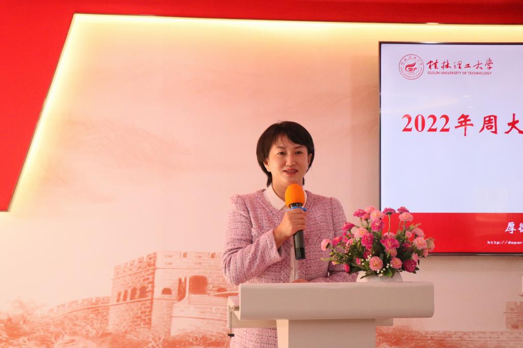 孙巍副部(处)长作活动致辞。她对吴惠玲经理一行表示欢迎和感谢,就广东周大福珠宝金行有限公司与太阳集团2138的合作情况作简要介绍,并向参加面试的48名同学提出三点希望:一是放松心情,沉着面试,展现桂工学子的良好精神风貌;二是努力学习,认真钻研,不负青春,争做出彩桂工人;三是饮水思源,知恩图报,传递爱心,帮助更多需要帮助的人。