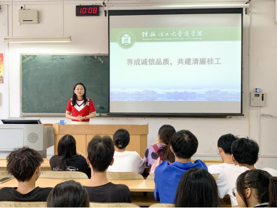 本次主题班会由各学院根据不同授课对象,以及学生特点、专业特质制作课件,并组织各班班主任利用班会课进行统一授课。课上,各学院班主任依托线上线下双渠道,聚焦“诚信”“责任”与“廉洁”等主题,通过梳理相关概念的历史渊源与现实表现,以具体生动的案例故事,引导学生深刻理解廉洁作风与诚信意识的重要性,全面学习把握“清廉桂工”建设的重要意义和学生清淳工程的基本要求,立志在日常的学习生活中倡廉守廉、求真学问,做品德高尚、本领卓越、勇当先锋的时代新人。