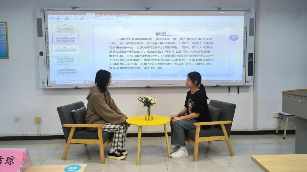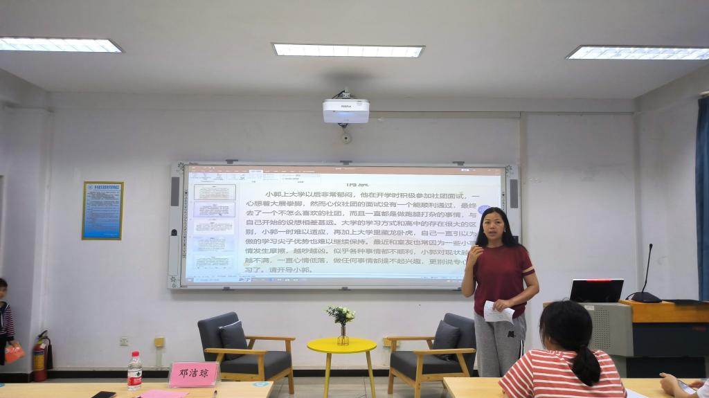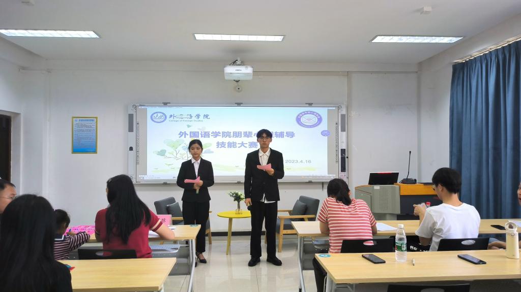 为全面普及心理学、心理咨询的相关知识和技能,帮助学生掌握更多的心理学知识,培养其乐观向上的心理品质,4月16日,外国语学院在雁山校区04305顺利举办“敞开心扉,快乐成长”大学生朋辈心理辅导技能大赛。外国语学院党委副书记邓洁琼,20级日语专业辅导员兼学院研究生辅导员王好男,学院全体心理委员一同参加本次活动。
