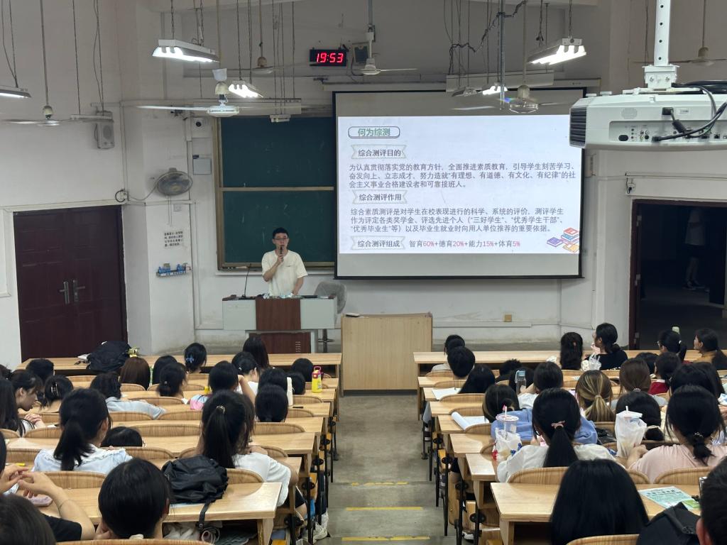 会议伊始,梁璇老师向大家介绍了本次分享会的主讲人。随后,彭劲超同学上台进行分享。他围绕着大学生综合测评主题向同学们进行了讲解,介绍了综合测评的目的、作用和组成,让同学们对综测有了初步了解。他从智育、德育、能力、体育四个方面详细说明了他的学习方法,同学们受益匪浅。接着,邓钦梅同学上台进行分享。她展示了自己丰富的任职履历与平时学习日语专业课的方法,并重点提出应该注重第二外语学习,提倡同学们积极参与比赛,以赛促学。最后,现场进行了互动环节,同学们积极发言,主讲人耐心解答了同学们的疑问。