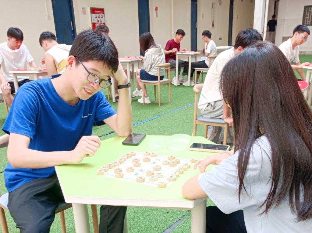 智力大碰撞活动包括五子棋、象棋的对决,为棋艺爱好者们提供一个共享棋类文化、以棋益智、以棋养性的交流平台,达到以棋会友的效果,提高了同学们的参与感和思维能力,营造了健康向上的社区文化氛围。棋手们在“战场”上激烈拼杀着,出车、跳马、飞象、上车、冲兵,有攻有守,“杀”得不亦乐乎。有时眉头紧锁,沉着迎战,在思考着走棋的思路;有时面带微笑,享受着赢棋的喜悦。活动氛围轻松、愉快,寓教于乐,棋手们的每一次举棋落子,都展现着平常看不到的沉着和稳健。在这场“楚汉争霸”过程中,每位参赛同学充分展示了自己的聪明智慧和胸襟气度,在纵横交错的棋盘上展现谋略,斗智斗勇。