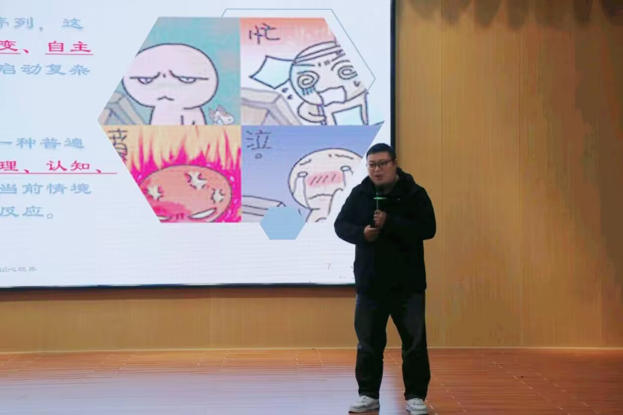 主题讲座上,李海亮老师用举例的方式讲述了情绪的内涵以及价值,随后重点为学生们讲解和分享情绪管理的RULER技巧。其中,Recognize指识别自己和他人的情绪;Understand指理解触发情绪的原因和情绪反应或结果;Label指准确命名自己的情绪感受;Express指清晰适当的表达自己的情绪以及需求;Regulate指有效的自我调节情绪。李老师强调,健康的情绪管理有利于提升工作效率,改善人际关系。而健康的情绪管理在于几点:一是提高心理健康意识,树立“每个人都是自己心理健康第一负责人”的意识;二是针对竞争压力增大的情况合理看待压力,使用合理方法解决压力;三是提醒同学们重视睡眠健康,保证充足睡眠时间,并教会大家用正念呼吸法关注于心。