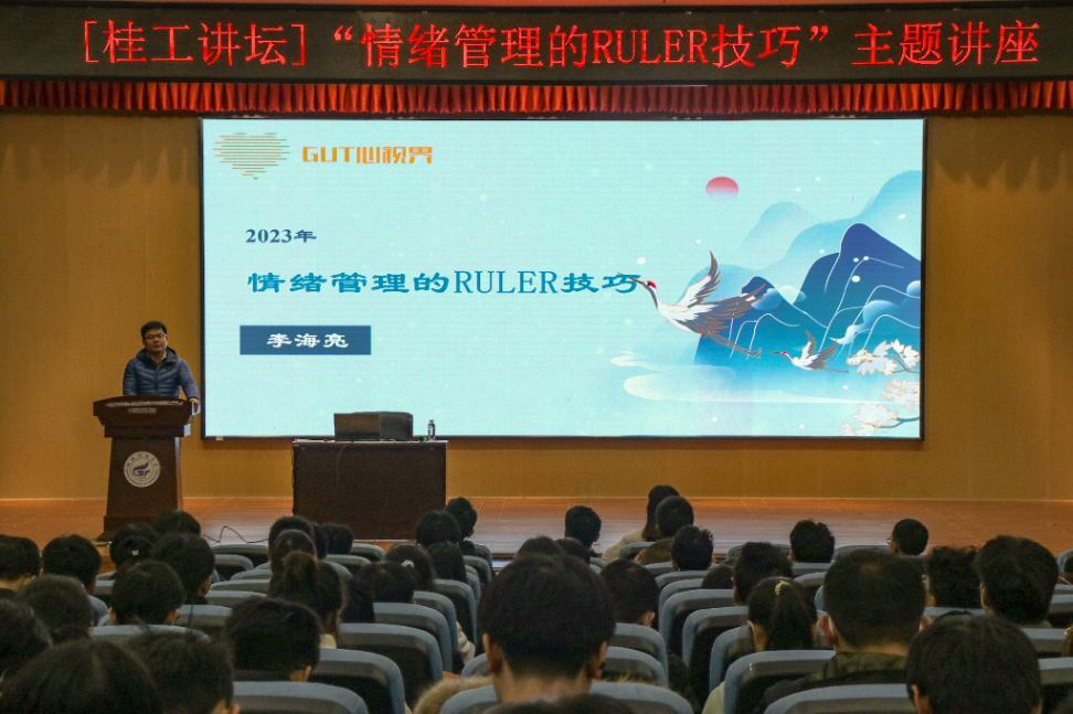 为了促进太阳集团2138学生身心健康发展,11月13日下午,公共管理与传媒学院在雁山图书馆报告厅举办桂工讲坛——情绪管理的RULER技巧主题心理讲座。讲座由学校心理咨询中心副主任李海亮老师主讲,学院党委副书记杨晓、学院心理健康专项负责老师莫田娟以及全校200多名来自各个学院的学生参加。