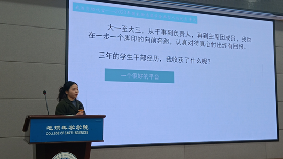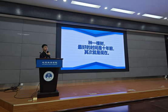 为进一步加强学风建设,培育优良学风,营造良好学习氛围,增强学生学习主动性,强化朋辈帮扶,发挥榜样力量,11月19日,地球科学学院在01501报告厅开展优秀学生经验交流分享会。四位学习成绩优异、综合素质突出的国家励志奖学金获得者面向学院学生做经验交流分享,学院2023级辅导员宁乃向、董子胜参加本次活动。