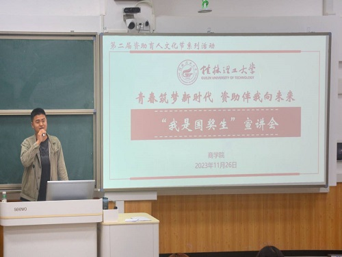 为充分发挥榜样示范作用,11月26日,商学院依托大学生成长成才教育课,在雁山校区05102、05103教室开展“党恩铭记心中,青春奋发启航”国奖生经验分享会。本次分享会邀请到商学院2022年国家奖学金获得者姜铭、谈可珑进行分享,学院全体2022级同学参加。活动由商学院2022级辅导员李书平主持。