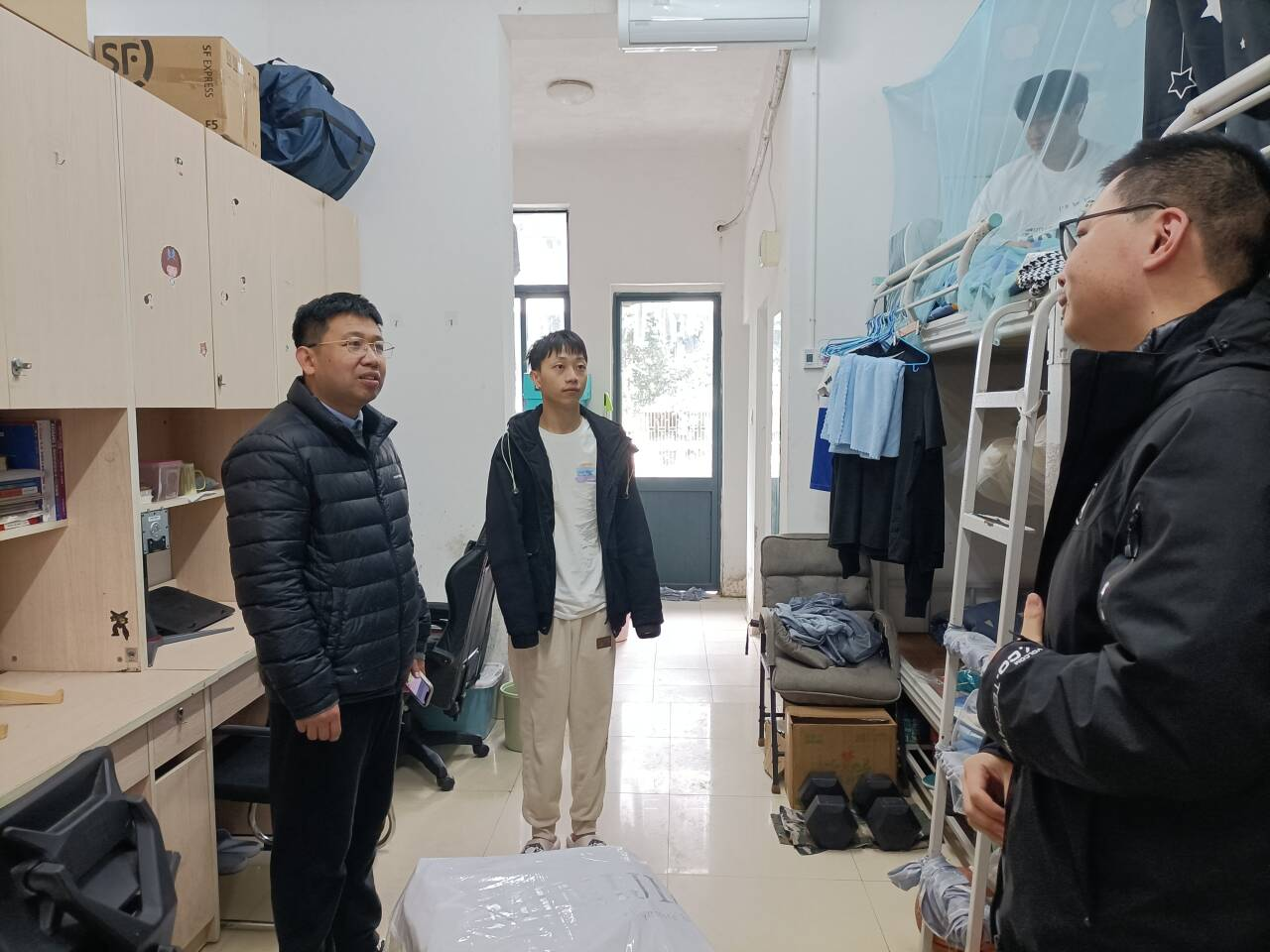 龙年始风华,万象启新朝。为了解新学期学生返校后的思想状况、学习与生活情况,深入开展学生返校安全教育工作,推进学院学生工作走深走实。2024年3月3日中午,学院院长张烈平、党委副书记王迎波、学院副院长代宣军、吴东、于雁南及各年级辅导员深入学生宿舍走访交流,为同学们送上新学期的关心和问候。