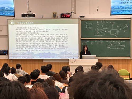 在成长成才课上,各年级辅导员传达了学校关于假期的具体安排,强调了请销假管理规定。同时,结合实际案例,深入开展了防溺水、防诈骗、交通安全、用火安全、防灾避灾和实验室安全等专题教育,并着重强调每位同学要牢固树立个人安全防范意识,坚守安全底线,始终把自身的生命安全和健康放在首位。