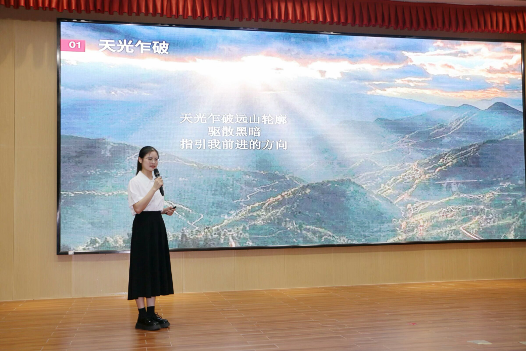 由主持人上台为大家介绍到场嘉宾后,此次演讲比赛也正式拉开帷幕。本次比赛共有十名参赛选手入围决赛,比赛现场每位同学使出浑身解数,用饱满的热情、鲜活的事例和真挚的情感讲述自己在党和国家资助政策支持下直面挑战、自立自强的成长事迹,表达着对党和国家资助政策的感恩之情,同时也表明了奋发向上、感恩奉献的励志之心。他们的演讲内容深入人心,语言生动形象,充分展现了当代青年积极向上的精神风貌。比赛最后,学院党委副书记邓洁琼进行总结讲话。她首先向参赛选手以及工作人员们表达了由衷的赞许及感谢,其次分别从演讲内容、声音技巧、形象表达等方面对参赛选手的演讲进行点评,并勉励同学们继续奋发进取,不断提升自我,心怀感恩之心,自立自强,以实际行动回馈国家对青年大学生的帮助。