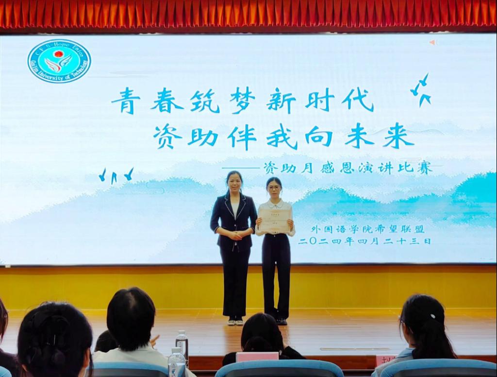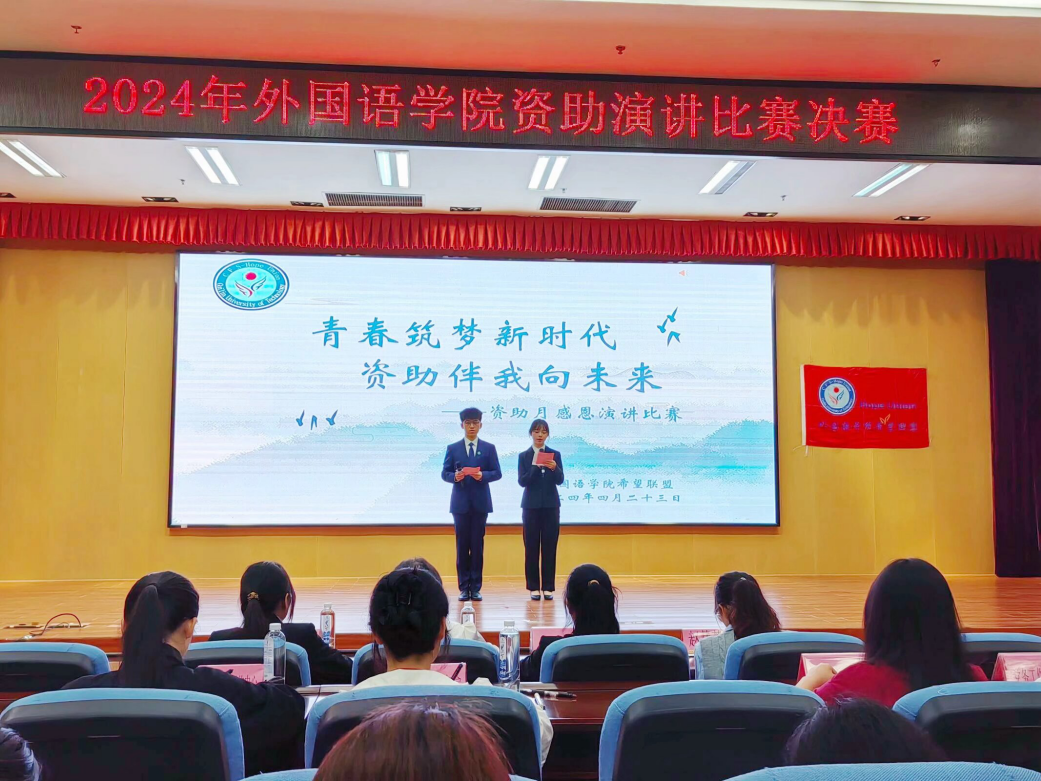 为进一步加大学生资助政策宣传力度,全面展示资助政策落实成效,同时弘扬受助学生在党和国家的关怀下心怀感恩、自立自强、拼搏向上的精神,4月23日晚,外国语学院希望联盟举办了以“青春筑梦新时代,资助伴我向未来”为主题的演讲比赛。学院党委副书记邓洁琼、23级辅导员曾燕以及学院兼职组织员赵慧芳出席本次活动。