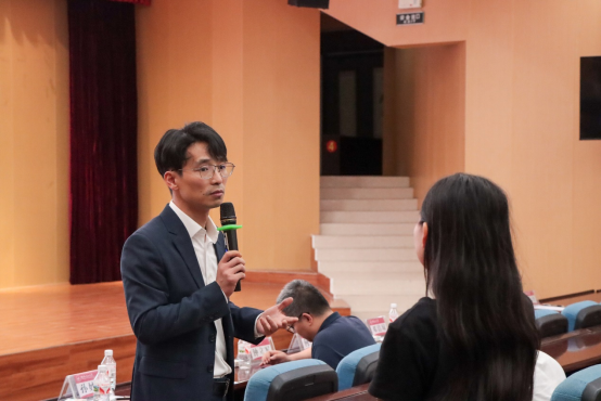 在互动交流环节,现场氛围热烈,同学们积极提问,就职业规划和就业方面的问题与何凡副总裁进行了深入交流。何凡副总裁耐心解答,为同学们提供了专业的指导和建议,帮助他们更好地认识自我、规划未来。