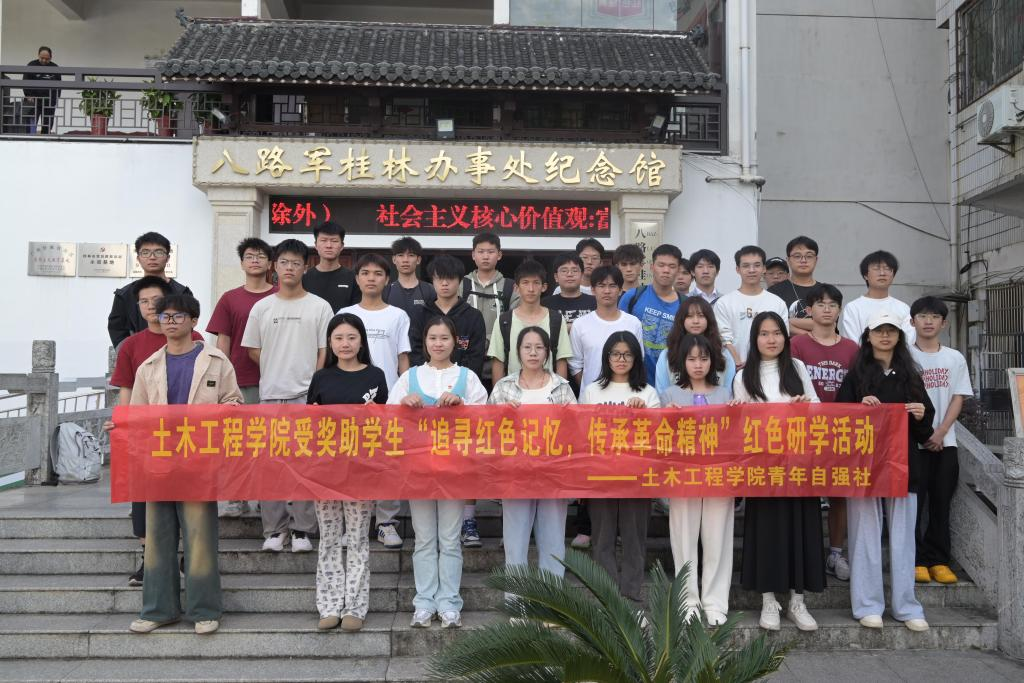 11月3日下午,土木工程学院与八路军桂林办事处纪念馆携手合作,成功举办了一场以“追寻红色记忆,传承革命精神”为主题的红色研学活动。此次活动由负责资助工作的彭思思老师带队,受奖助学金学生参与,旨在借助参观八路军桂林办事处纪念馆这一宝贵契机,引领同学们深入探寻抗日战争的曲折波澜,深情缅怀先烈们的英勇革命事迹,深刻感悟革命先辈们不屈不挠的伟大奋斗精神,从中汲取爱国主义精神的丰厚滋养,筑牢理想信念根基。