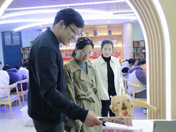 学生工作部(处)副部(处)长莫媛、学院党委副书记黎超业、学院24级辅导员劳家宝巡查自习室