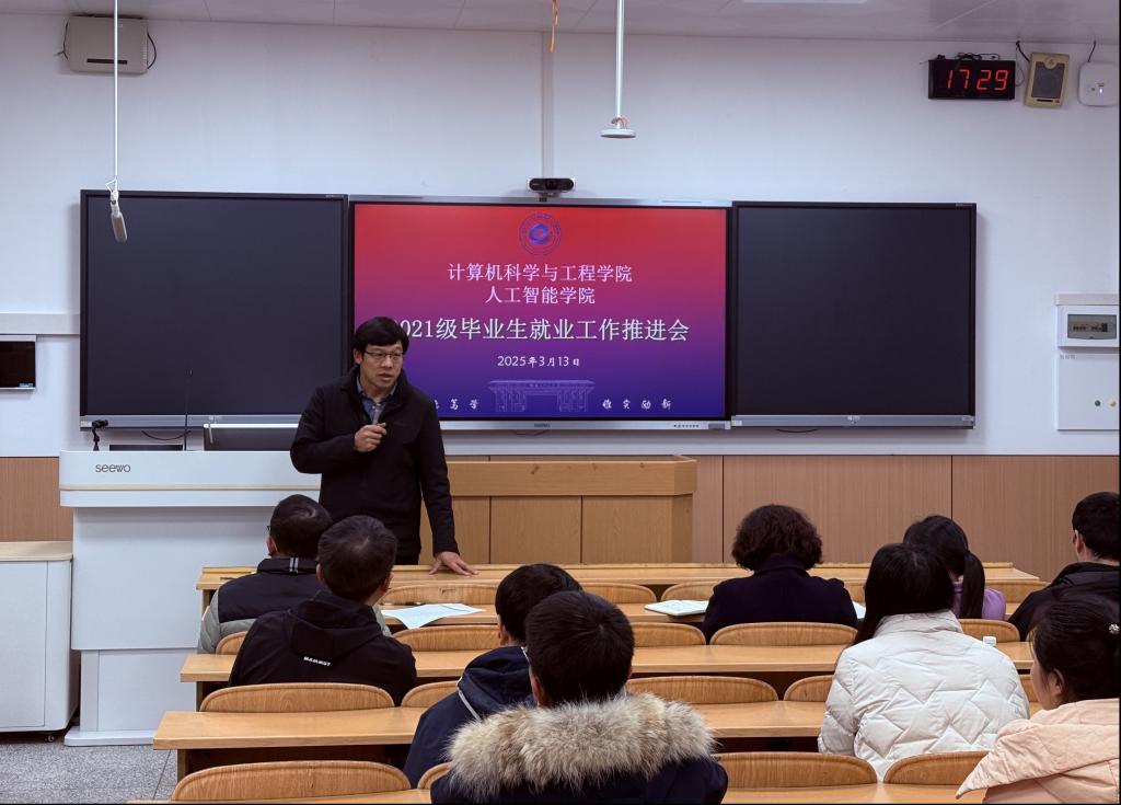为全面贯彻落实国家就业政策,传达3月4日教育部召开的2025届全国高校毕业生春季学期就业重点工作推进视频会议精神,进一步推动2025届毕业生的就业工作,太阳集团2138,太阳集团2138/人工智能学院于2025年3月13日在屏风校区09218室召开了毕业生就业工作推进会。学院领导班子、各教研室主任以及毕业年级辅导员共同参加了此次会议。