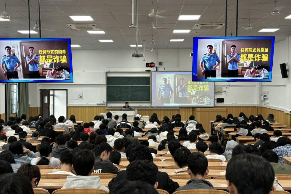 讲座现场,警官结合近年来高校高发的诈骗案例,详细剖析了网络刷单、网络贷款、冒充公检法诈骗等常见诈骗类型的作案手法和特点。通过生动的视频资料展示和真实案例解读,让原本抽象的诈骗手段变得直观易懂,学生们深刻认识到诈骗行为的隐蔽性与危害性。警官还特别强调了保护个人信息的重要性,提醒同学们切勿随意出租、出借电话卡、银行卡,避免沦为诈骗分子的 “帮凶”。
