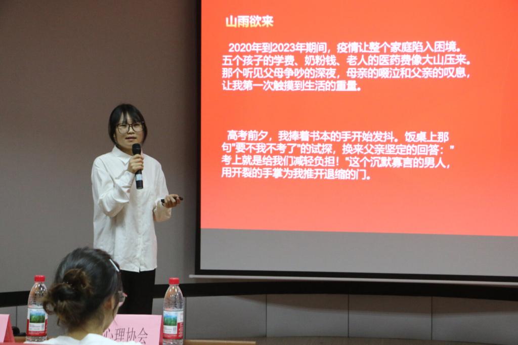 陈欣老师总结发言时高度赞扬选手表现,称他们将个人成长融入集体发展,体现了政策温暖与青年责任传承,是资助育人工作的生动诠释。她还期望同学们把感恩转化为行动,以优异成绩回报社会和国家。
