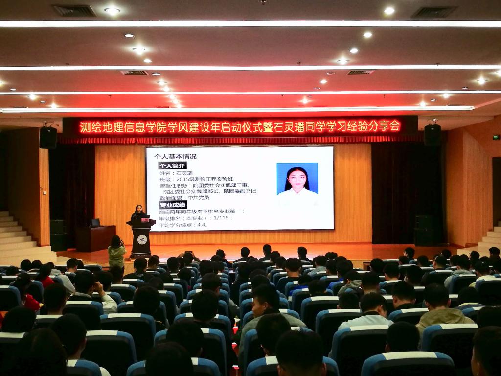 为进一步加强学院学风建设,营造良好的学习氛围,3月11日,测绘地理信息学院在雁山校区图书馆报告厅举办学风建设年启动仪式暨石灵璠同学学习经验分享会。院党委书记江云清、党委副书记周明权、班主任代表及全体辅导员出席了此次大会,2018级全体学生及高年级学生代表参加了会议。会议由2016级辅导员刘砥主持。