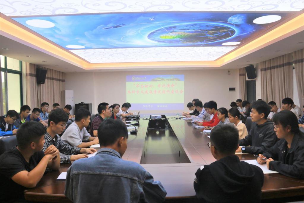 为贯彻落实“不忘初心、牢记使命”主题教育调查研究工作的精神和部署,深入调研我院本科学风建设状况,10月14日下午,测绘学院在雁山校区立信楼02226会议室召开“不忘初心、牢记使命”本科学风建设情况调研座谈会。学院党委书记李景文、党委副书记周明权、各年级辅导员以及学生代表参加了本次座谈会。本次会议由2019级辅导员吴莲莲老师主持。