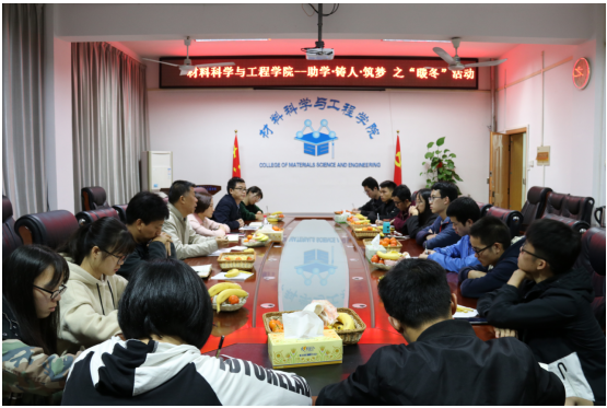 为精准实施困难学生帮扶工作,深入了解家庭经济困难学生学习生活情况,充分听取学生对资助工作的意见和建议,提升我院资助育人的工作效果。材料科学与工程学院2019年11月22日晚19点在02308会议室召开“助飞计划”之“暖冬”活动师生座谈会,学院党委书记李治、党委副书记徐时、各年级辅导员和困难学生代表参加座谈会。