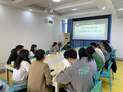 11月4日,商学院在雁山校区07501会议室召开2022年秋季学期心理健康教育研讨会,会议由商学院党委副书记沈菲菲主持,全体辅导员参会。