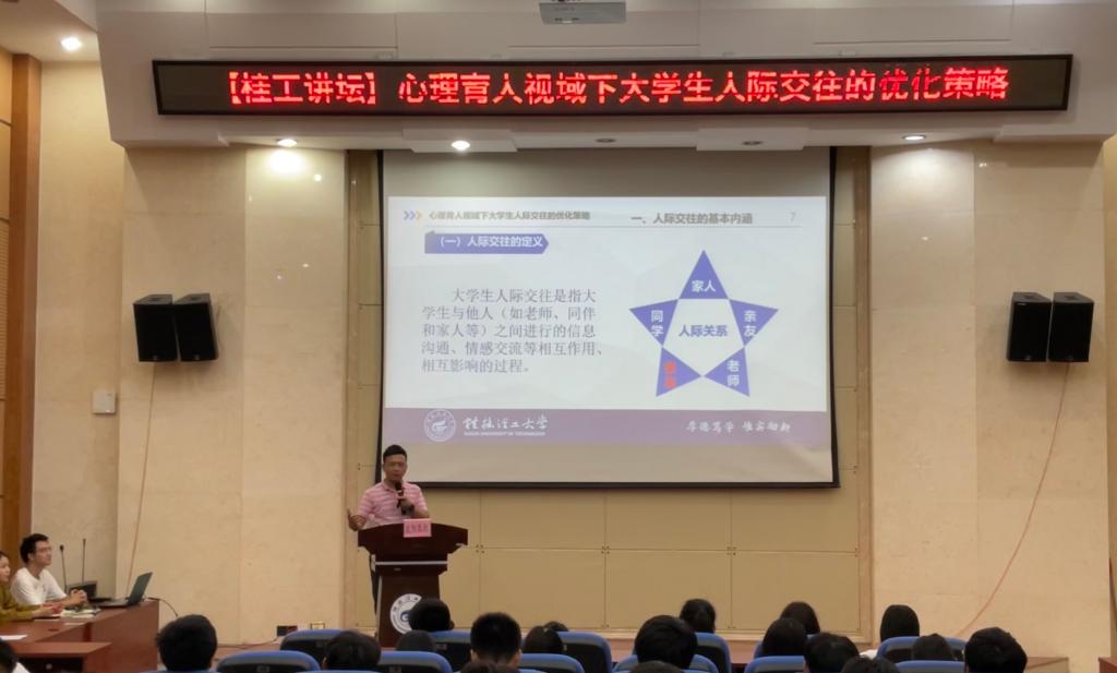为提高在校大学生心理健康素质,帮助同学们提高人际交往能力,构建和谐人际关系,11月9日晚,地球科学学院在雁山校区萃华楼报告厅开展题为“心理育人视域下大学生人际交往的优化策略”的心理健康讲座,讲座由中国心理学会注册心理师欧阳胜权老师主讲,120余名在校师生参加本次讲座。
