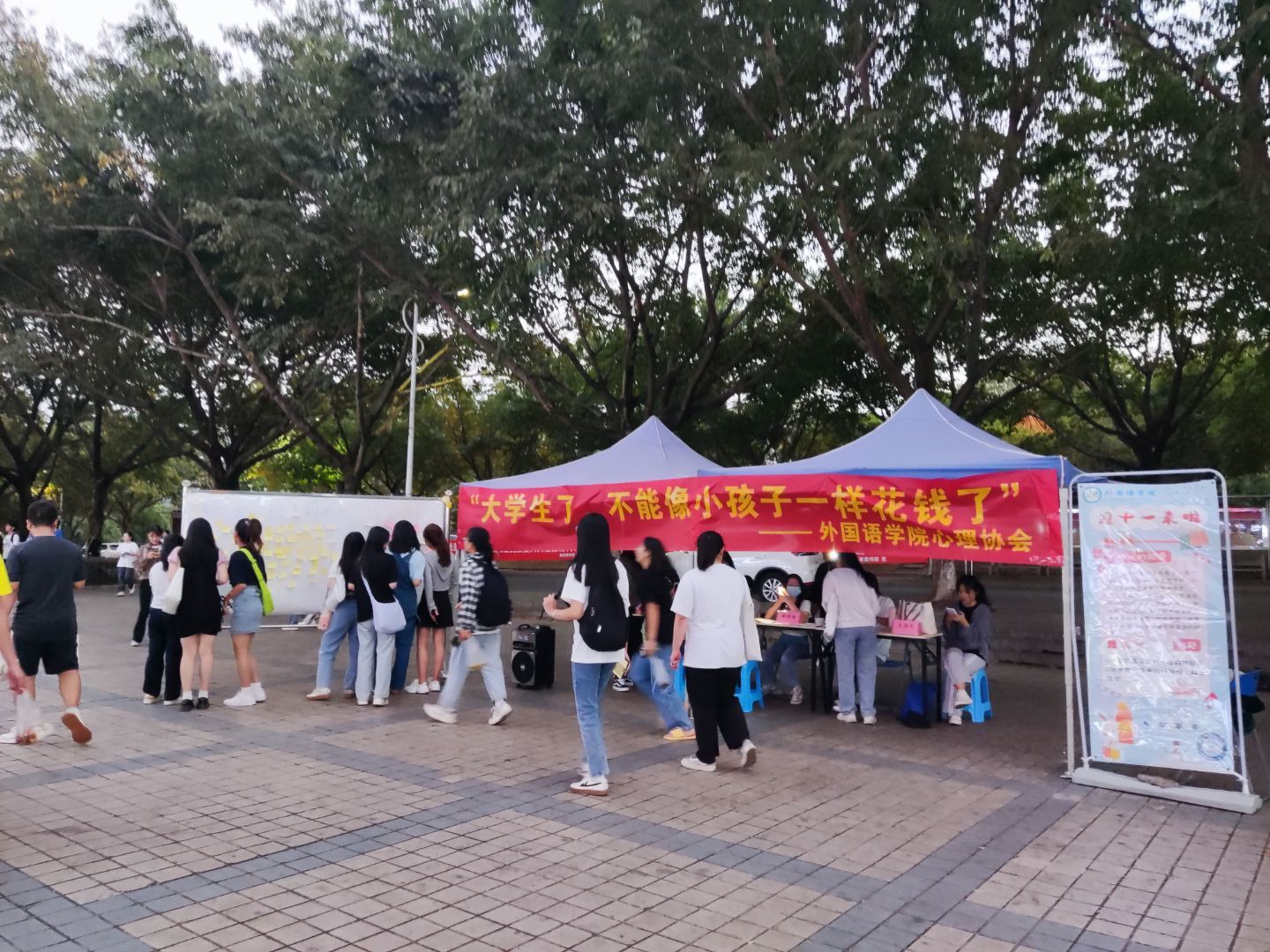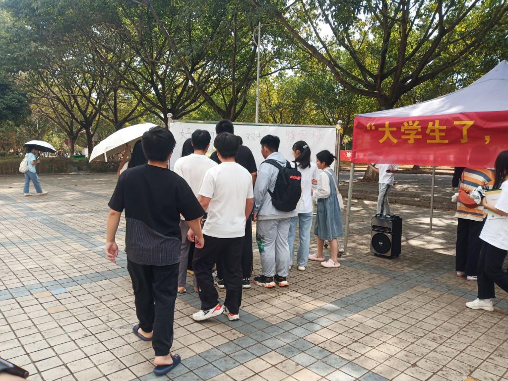 为鼓励大学生理性消费,引导他们自觉树立健康的消费观念和恋爱心理,11月11日中午,外国语学院心理协会在一号食堂广场面向全校师生开展了大学生“双十一”健康消费心灵树洞投稿活动。