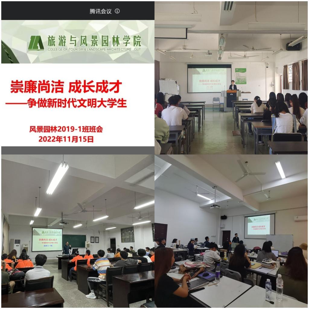 为帮助青年大学生树立正确的人生观和价值观,扣好人生的第一粒扣子,让廉洁之风走进校园,营造廉洁桂工的教育文化氛围,10月28日至11月17日,旅游与风景园林学院组织各班级开展了“清廉教育”主题班会。