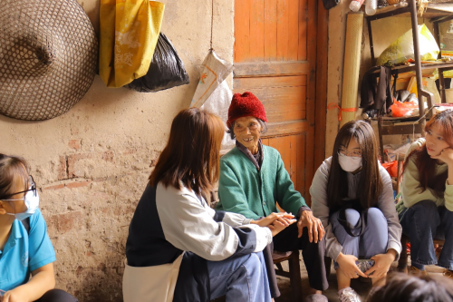 人间有温暖,人间有真情。志愿者们带着水果、牛奶等物资,走访了桂林市雁山区云塘村的几位老人。在老人家中,志愿者们主动做家务,与老人亲切聊天,详细询问了他们的身体、生活等状况,并结合自身受助经历,与奶奶爷爷们分享了在校的日常学习经历,鼓励爷爷奶奶要时刻保持心态乐观。在与老人的交流过程中,学生们的话语中无不流露着真切的关心和温暖。