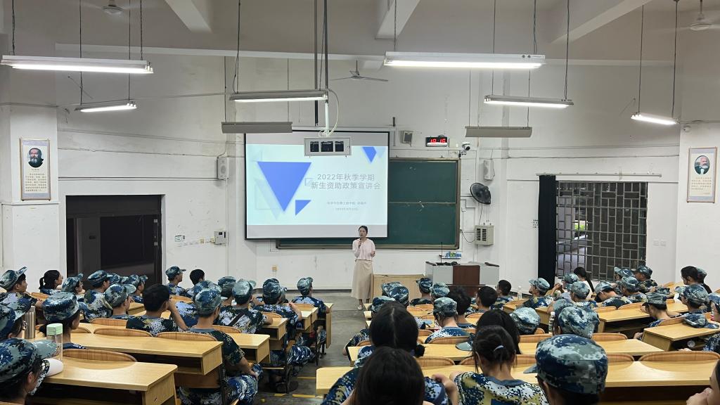 为深入贯彻学院资助政策宣传,做好精准资助和资助育人工作,进一步开展2022级家庭经济困难学生的资助工作,9月22日晚,化学与生物工程学院举行新生资助政策宣讲会,宣讲由分管学生资助工作的辅导员梁精华主讲,新生辅导员张伟颀、熊艳以及2022级全体新生参加了本次大会。