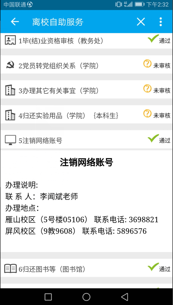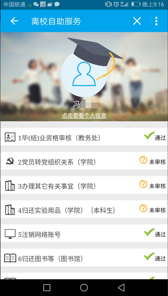 步骤三:打开“离校系统”即可看到个人毕业流程办理情况