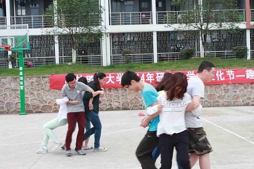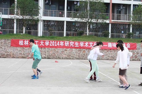 4月19日,校研究生会分别在雁山校区、屏风校区举行2014年研究生学术文化节趣味体育运动会。此次活动响应了“走下网络、走出宿舍、走向操场”活动倡议,丰富了研究生课余文化生活。通过两人三足、背夹球行走、三人篮球、趣味接力、气排球比赛等项目,研究生们在相互合作中体会到了团队的力量,在竞技中体验到了运动的快乐和乐趣。
