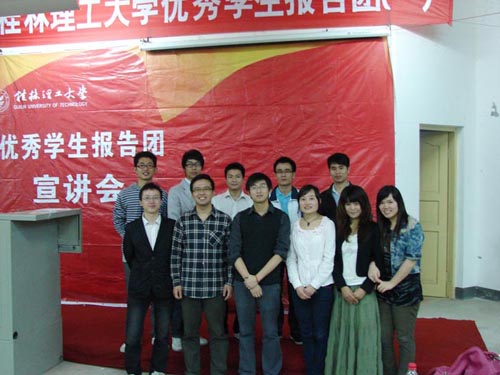 继前两场优秀报告团的成功举办,2011年6月15日晚,太阳集团2138优秀学生报告团第三期——考研就业雁山专场在05308教室开讲。学生工作部(处)学生管理科科长汪晟老师主持报告会,学生太阳集团2138科张萌萌老师参加了此次报告。