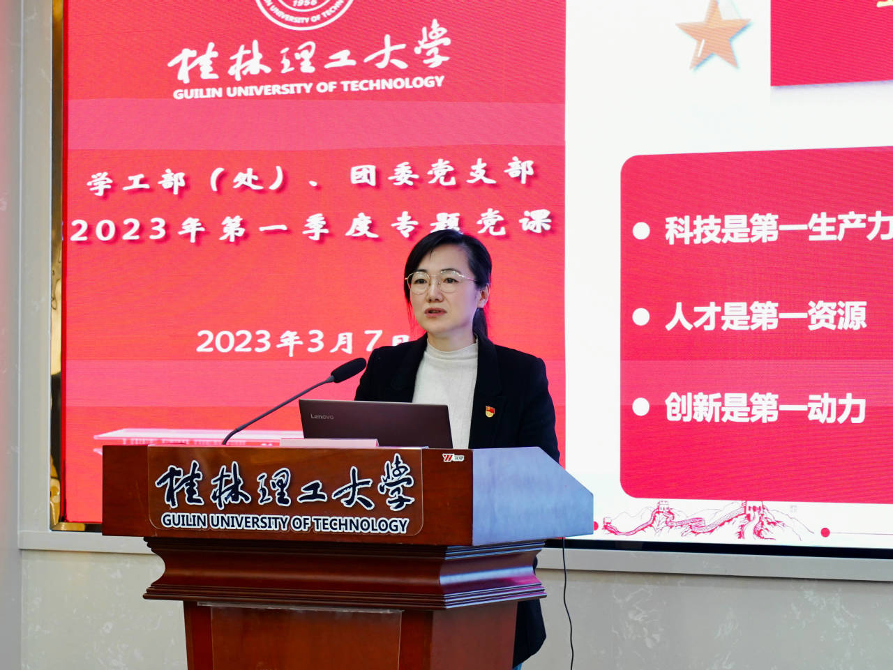 为全面贯彻落实党的二十大精神,3月7日下午,学工系统召开学习贯彻党的二十大精神专题报告会。学校党委常委、统战部部长邱杰同志受邀出席授课,学工部(处)、团委全体成员,以及各二级学院分管学生工作的党委副书记参加活动。本次活动由支部成员李南同志主持。